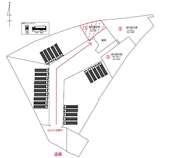 大型車両進入可能で資材置場用地におすすめ!