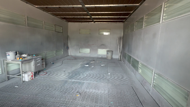 塗装ブース完備!フレーム修正機あり!敷地約500坪で駐車スペース広大!20台以上駐車可能!